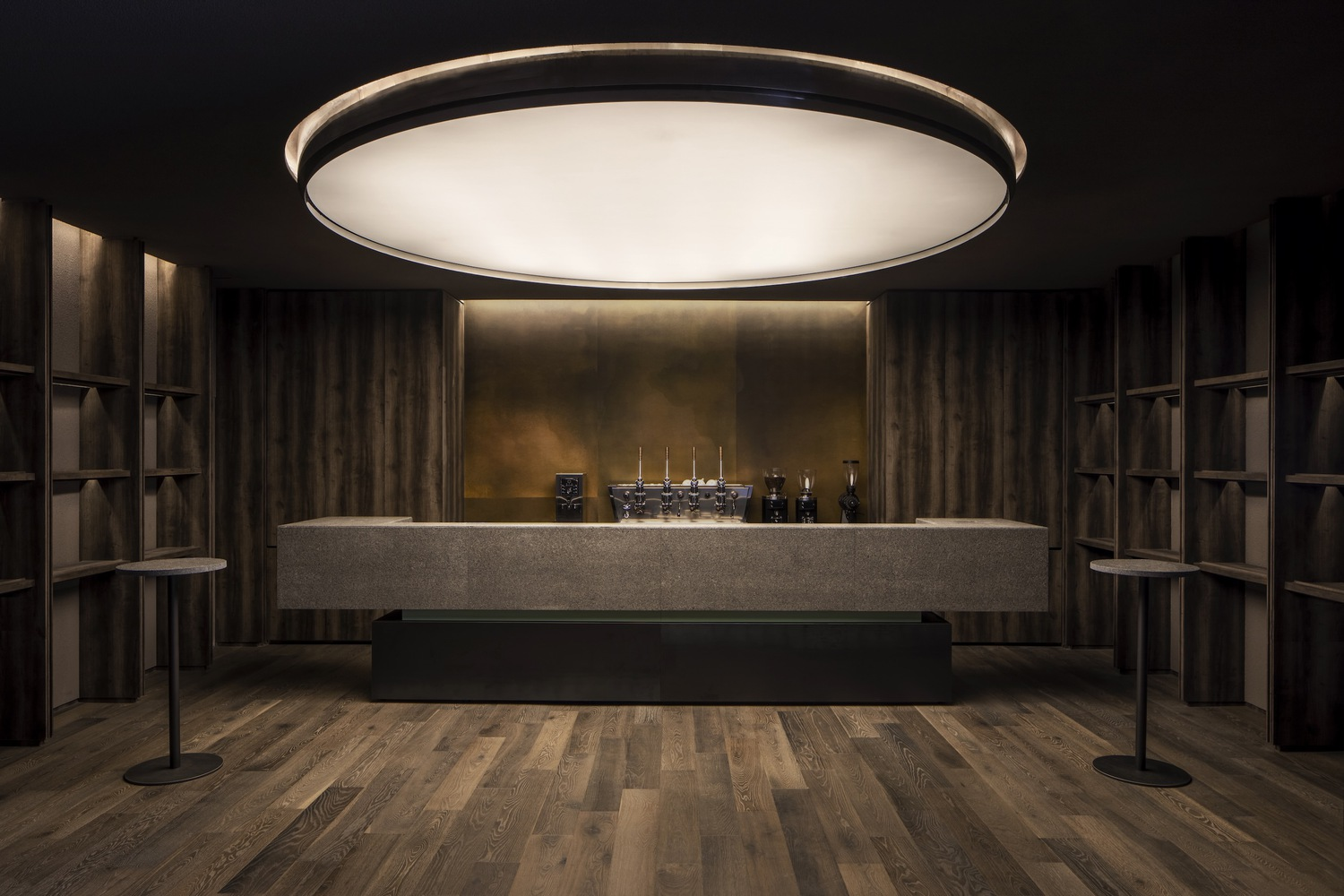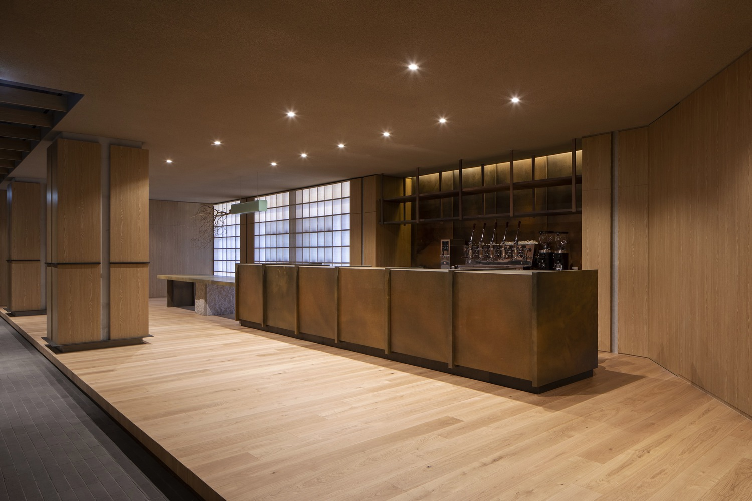 The cafe’s exterior features restrained, raw proportions that draw the eye along the visual perspective, inviting immersion and depth. Upon entering, guests encounter an espresso bar and roasting room designed to embody the client’s philosophy of coffee authenticity and craftsmanship. This initial area sets a tone of sincerity and gravitas, emphasizing the centrality of coffee in the spatial narrative.