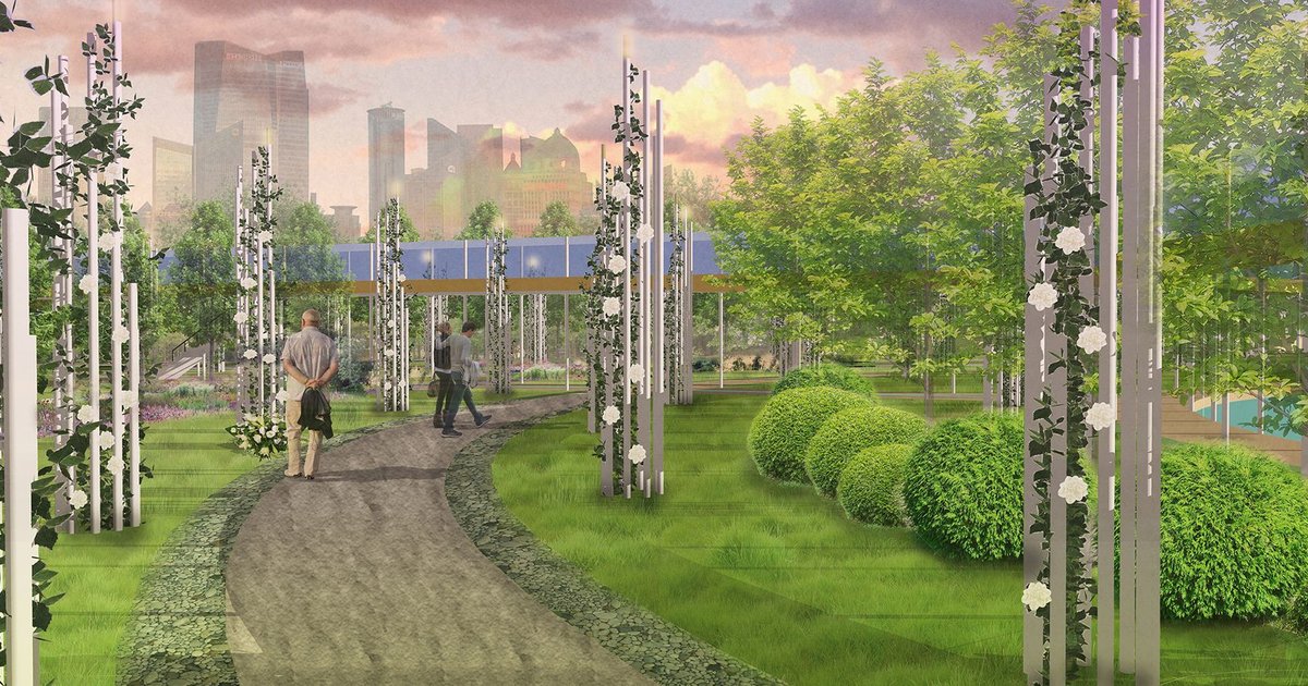 The project is designed around the life-death philosophy, where "Circle of Life" symbolizes one's journey, and "Occupation of Life" denotes the meaning and impact of that journey. These two elements merge into a unified vision expressed through the title πr². This cemetery design envisions cremated remains being buried beneath vertical pikes alongside seeds. Over time, the remains decompose, their nutrients absorbed into the soil, eventually nourishing plants that bloom into flowers. This process becomes a literal and poetic expression of rebirth and legacy.