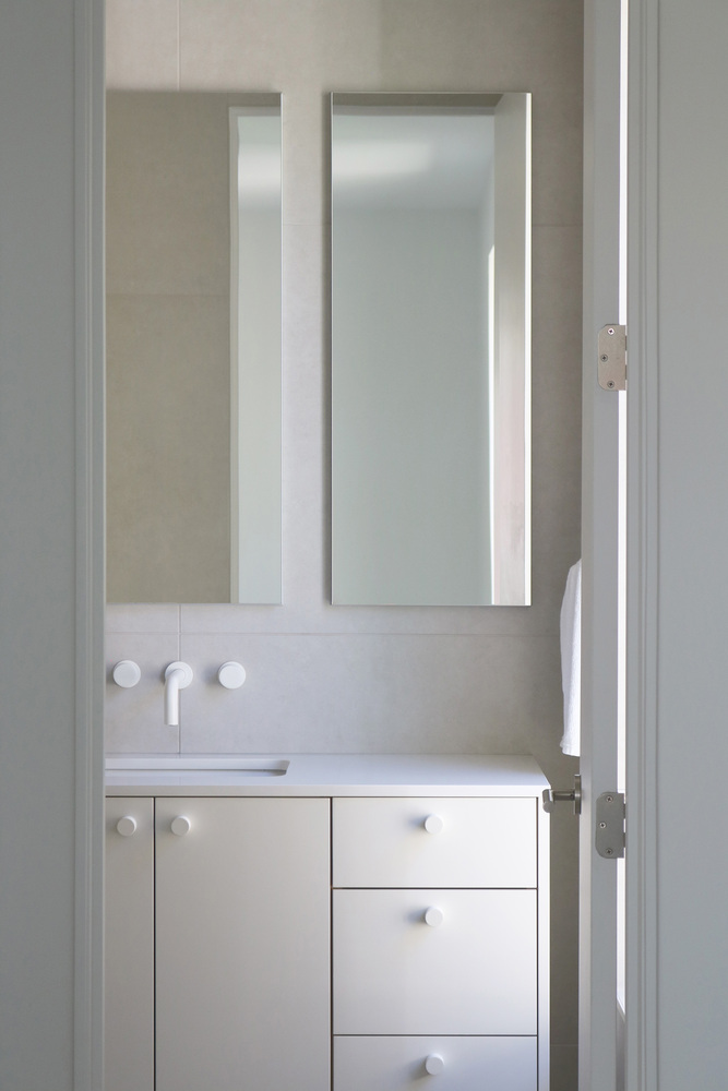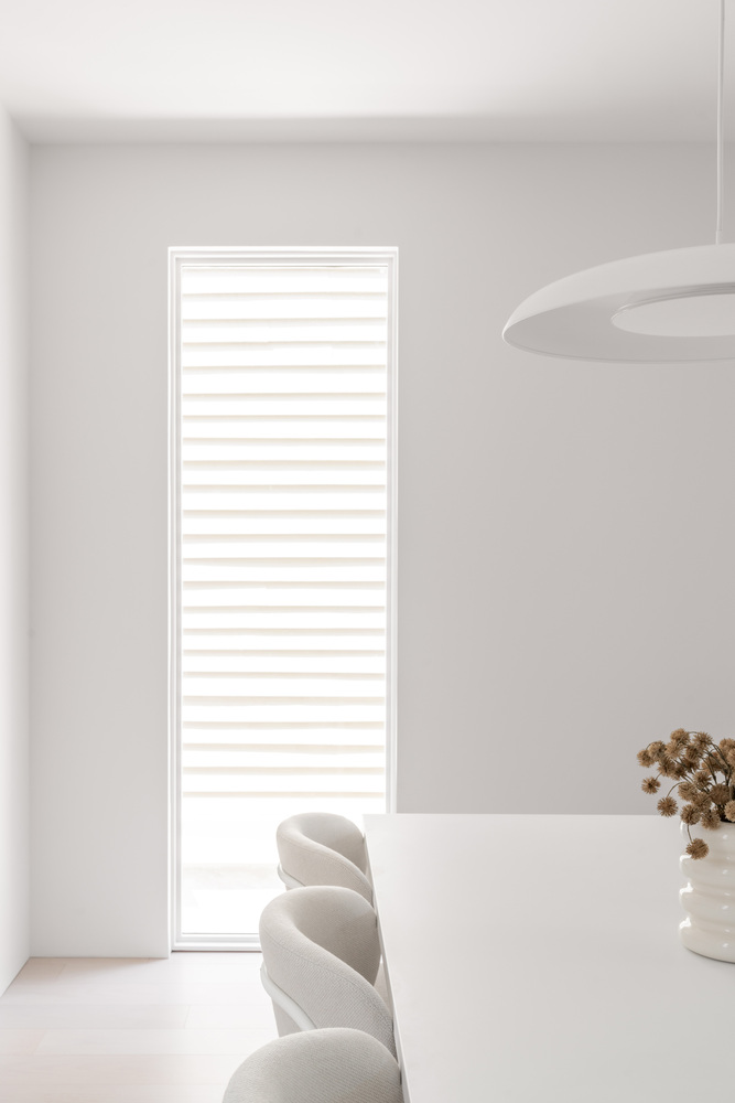 Inside, Radcliffe House embraces a refined, minimalist language. Bleached oak flooring throughout sets a warm yet subdued tone, complemented by meticulously detailed surfaces where traditional trim has been eliminated. From door frames to baseboards and stair railing brackets, every element has been seamlessly integrated, reinforcing the home's quiet elegance and timeless modernity.