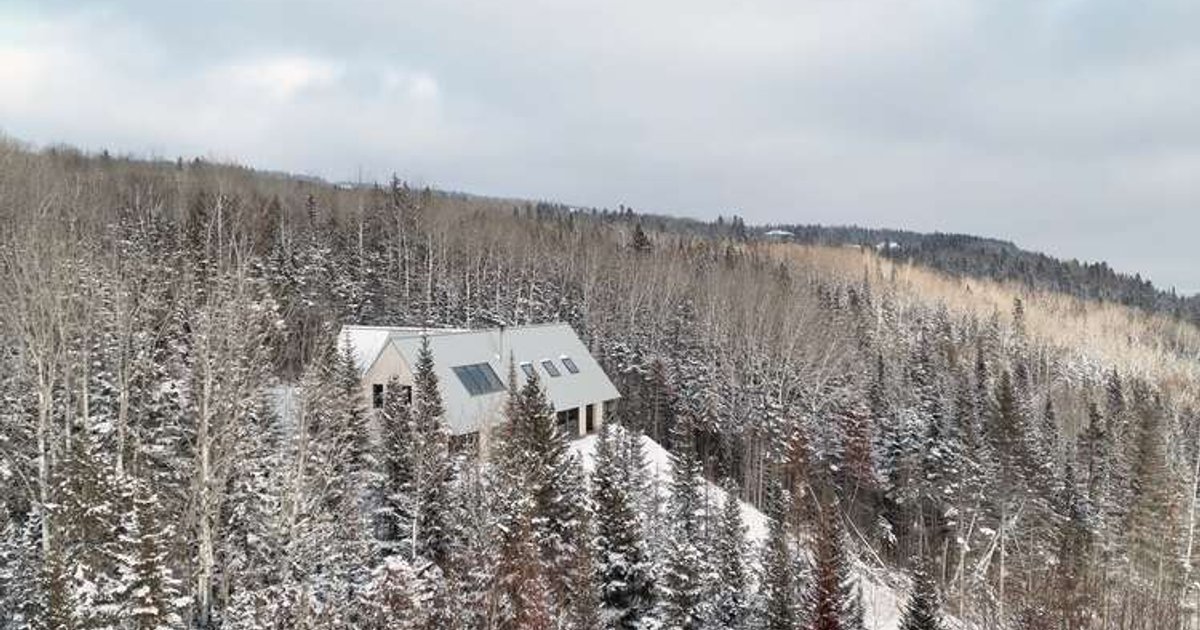 Once a working woodlot carved by logging trails, the site has evolved into a landscape of cross-country ski routes and recreational pathways. The owners envisioned a home that would embrace this winter setting—a space for leisure, rest, and togetherness that could comfortably host up to twenty people. The residence was therefore conceived not just as a house, but as a multigenerational destination, a future focal point for family traditions.