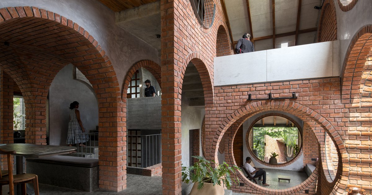 Materiality plays a defining role in expressing the duality of the design. The L-shaped block, constructed with locally sourced exposed brick, draws inspiration from traditional Wada architecture—characterized by arches, vaults, niches, and curved openings. This creates a warm, tactile, and rhythmic spatial experience rooted in local craftsmanship.