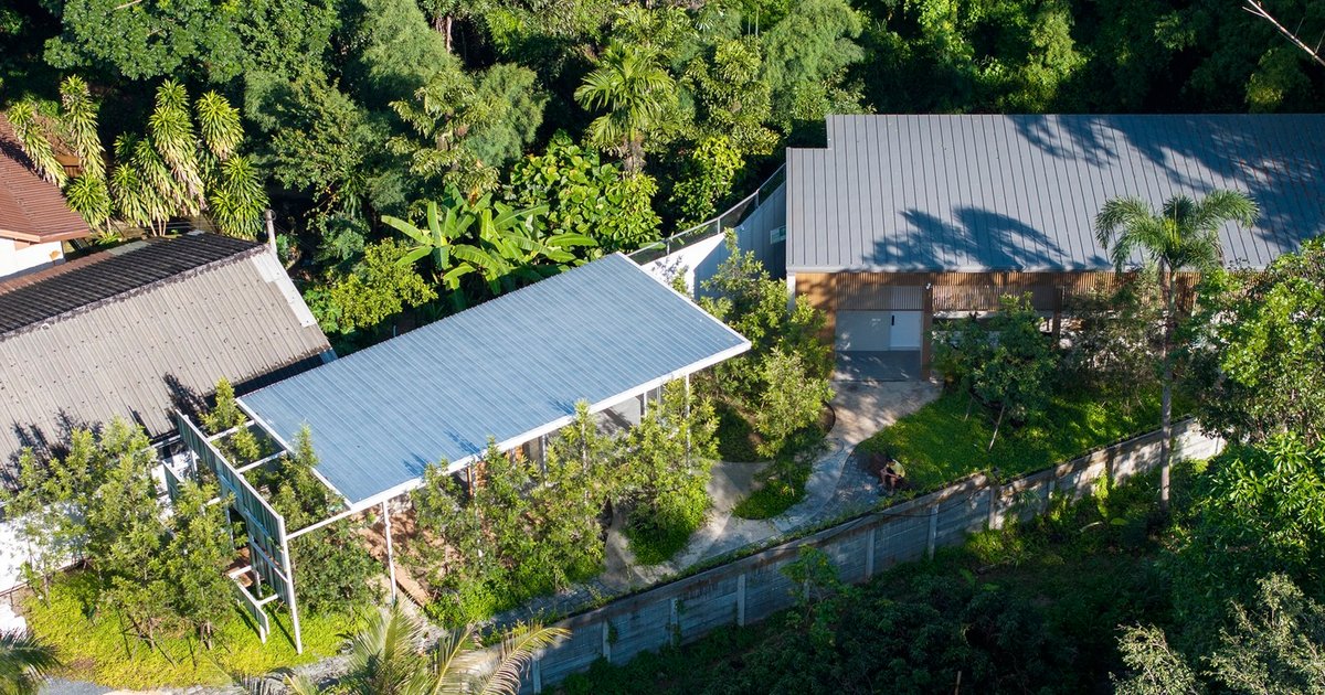Positioned beside a lush garden within the property, the guest house was conceived to blend seamlessly into its natural surroundings rather than assert itself as a distinct object. With a modest program and uncomplicated spatial requirements, the project’s primary focus became its relationship to the landscape, light, and climate. The architects sought to dissolve the boundary between architecture and nature, allowing the building to feel like a natural continuation of the garden itself.