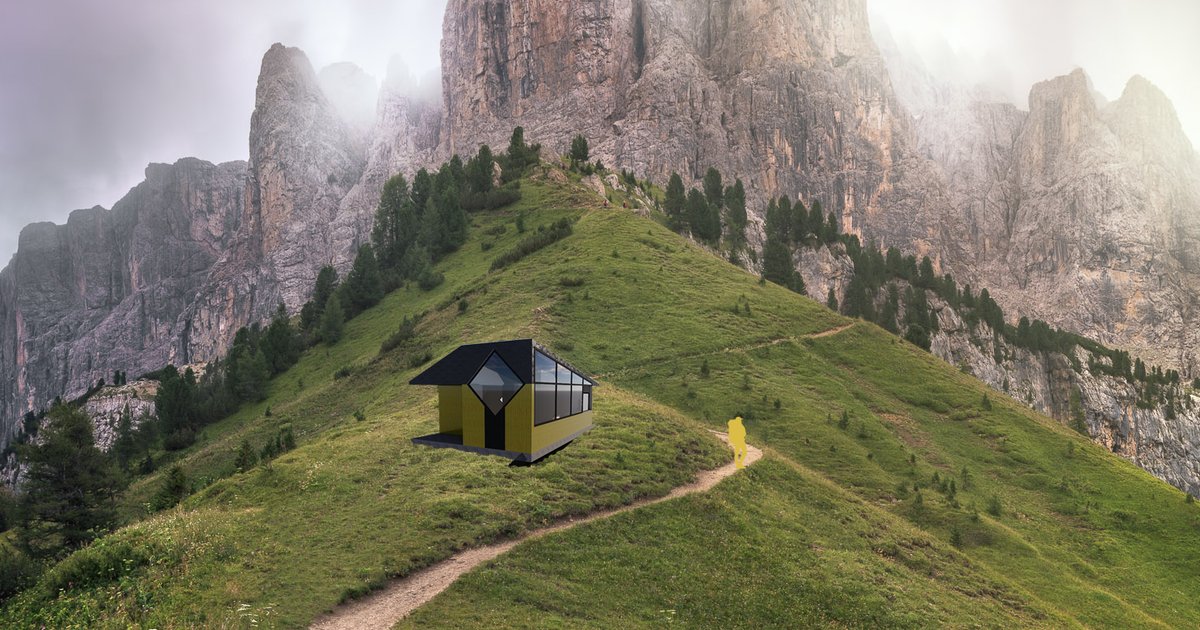 Embarking on a journey. Leaving on a trip. Reaching out to new horizons. These are some of the phrases that might pass through the minds of hikers that dare to traverse the Pyrenees Mountain range. Boasting breath taking views, incredible changes in elevation, and an unmatchable emersion into nature, hikers will find themselves in need of a good recharge after a day hiking in this environment. Thus enters the trio of cabins collectively named, Recharge Range. Each cabin responds uniquely to its environment through its form and function. Cabin one picks hikers off the ground giving them a new vertex point to enjoy the serial scenery. Cabin two bends with the horizon to give viewers an unblocked scene. Cabin three aligns itself with the most iconic scenes its environment has to offer and gives hikers a perfectly framed view. Each cabin, like its surroundings is different and approaches its design problem through an alternative lens. The metal cladding assembly and roofing gives the cabin a resilient advantage against the elements through its durability and built in rainscreen. The yellow color was specifically chosen for its high visibility to ensure hikers do not miss the cabin in low visibility conditions. The playful color also adds a tinge of excitement juxtaposing against the rocky background. The floor system of the cabins can be adjusted to many terrain types utilizing angular supports as illustrated in cabins three’s design, thus allowing for maximum flexibility in a shifting terrain. Vernacular architecture types were explored early in the design process to ensure the cabins appropriately live in their context. Although unprecedented in form and material the massing and size of the cabins reflect traditional hiking shelters found elsewhere in the Pyrenees Mountains. Safety and adaptability were also taken into consideration. Stairs were included in the design of cabin one in case a hiker may be injured and needs access to the sleeping area. Locking doors and windows were also included in the design to increase the safety of the hikers. Also, investigated early on were the day-to-day conditions that hikers in the Pyrenees Mountains face. After some consideration it was determined that comfort should be another main design driver in reaction to these conditions. Thus, it was reflected in furniture selection and the general layout of the cabins. As hikers will often be sleeping outside during their journey the Recharge Range cabins will provide them with a warm reminder of home and a safe place to recharge for the remainder of their adventure. Custom glazing was purposefully incorporated into each of the cabins designs as few views are more worthy of special facilitation than those which one will encounter in these mountains. Instead of looking from the outside in, the emphasis is instead placed from the inside out as seen in cabin two’s dining bar. In this manner, the hiker never really leaves the trail but instead receives a well deserves rest as they face the trail ahead. Each cabin is seen as a lighthouse in its sea of mountains. A place of rest and refreshment and inspiration. The architecture of each cabin is unique and becoming of its site location. Hikers will often gaze upon its beauty for hours as they climb slope after slope to reach these resting places of seclusion. After a night’s rest and receiving some inspiration, the hikers will again advance in their journey. But this time they will begin their undertaking with momentum in their step and memories in their minds.