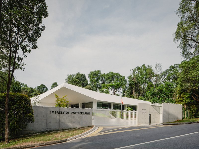 The Swiss Embassy in Singapore, redesigned by Berrel Kräutler Architekten, exemplifies modern embassy architectural design with a focus on sustainability and openness.