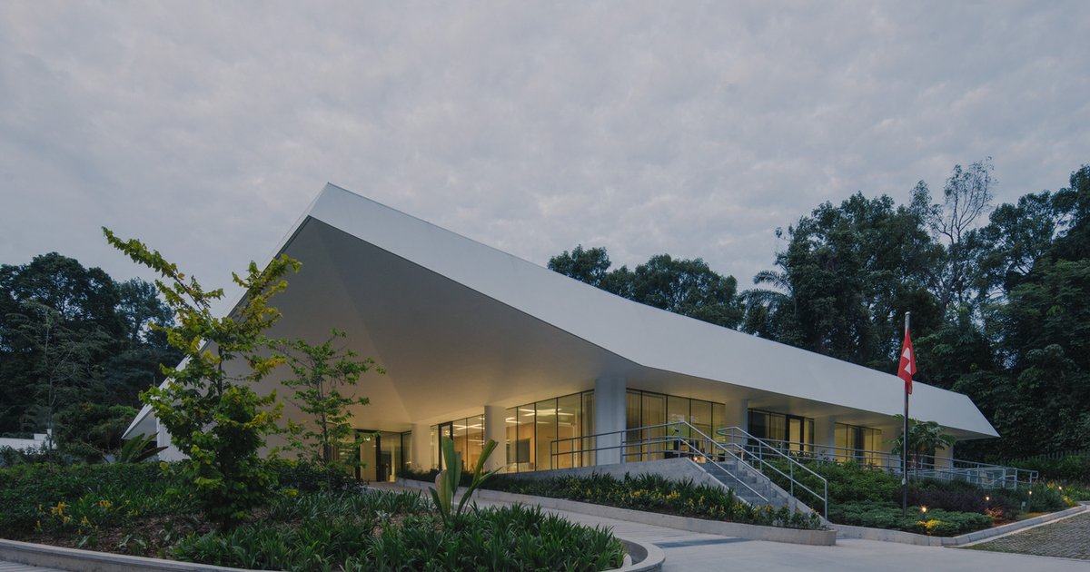 In renovating the Swiss Embassy, which was originally built in 1984, Berrel Kräutler Architekten adopted a minimally invasive approach to enhance the existing structures. The project was envisioned to harmonize with the surrounding tropical landscape, incorporating the existing greenery into the design to maintain a seamless transition between the built environment and nature.