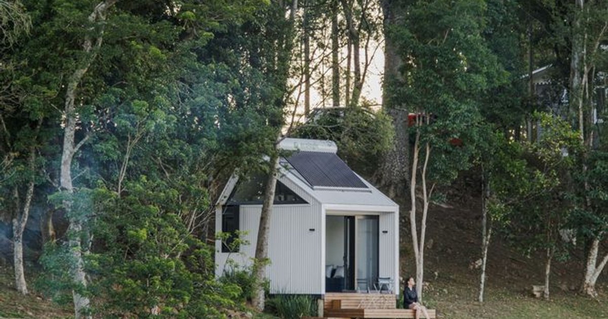 A minimalist prefab cabin in Brazil's Serra Gaúcha, blending off-grid sustainability with panoramic lake views and immersive forest living.