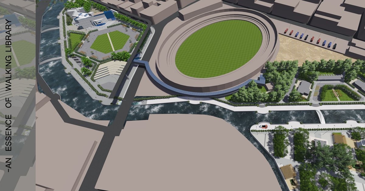 Located near key urban landmarks, including stadium infrastructure and existing public roads, the project strengthens pedestrian connectivity and activates underutilized edges. The circular stadium ground becomes visually and functionally linked to the river through landscape transitions and bridges.