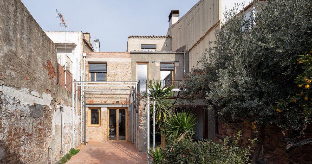The project renovates two historic homes in Terrassa, Spain, merging them into a sustainable, energy-efficient residence with bioclimatic strategies and eco-friendly materials.