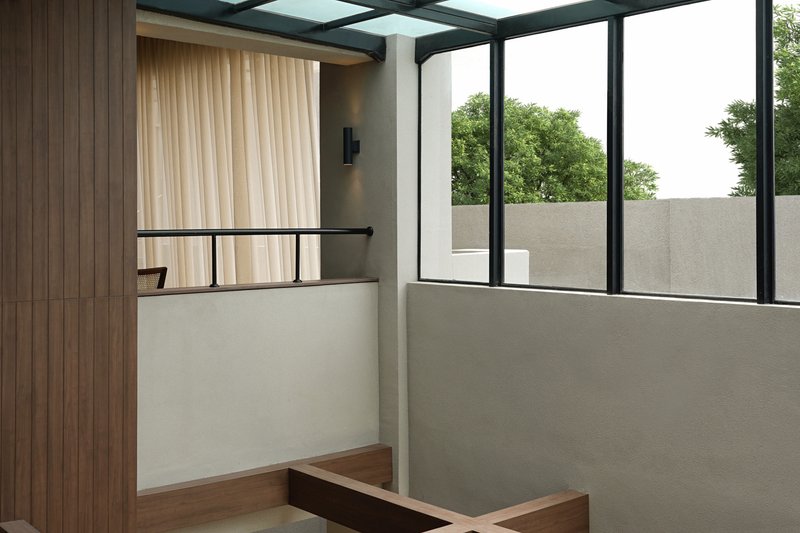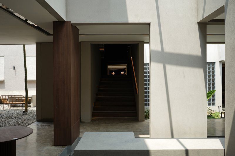 The architectural approach involved creating a large central opening connected by a bridge, which now serves as the main circulation path for guests. This design choice not only enhances the spatial experience but also integrates the three main building masses into a singular functional space.