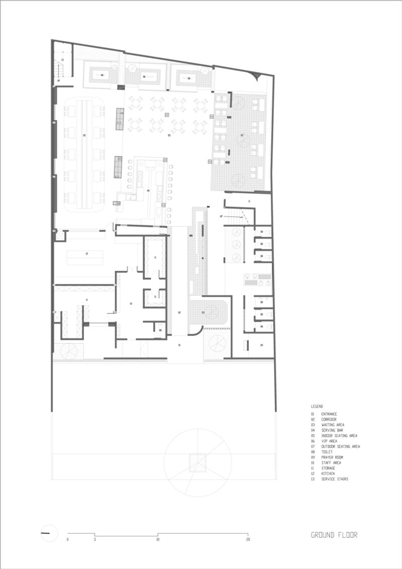 Despite the open plan, the restaurant cleverly incorporates different zones ranging from public to private. The design includes VIP areas with varied elevations to enhance privacy, and sofa seating on the second floor, delineating a clear transition from more public spaces below.