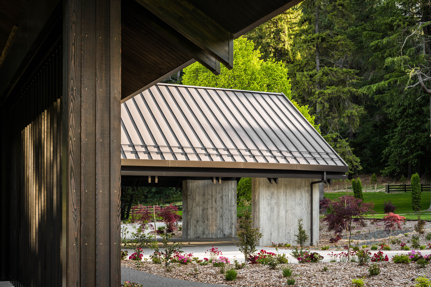 Materiality plays a vital role in this harmony. Inside and out, the palette is tactile, elemental, and honest. Timber, concrete, and blackened steel dominate, while Western Red Cedar cladding is stained ebony to allow the building to retreat into its environment. The massive concrete fireplace suspended from the ceiling becomes a sculptural centerpiece—at once raw and calculated, anchored by the structural precision of hidden engineered steel.