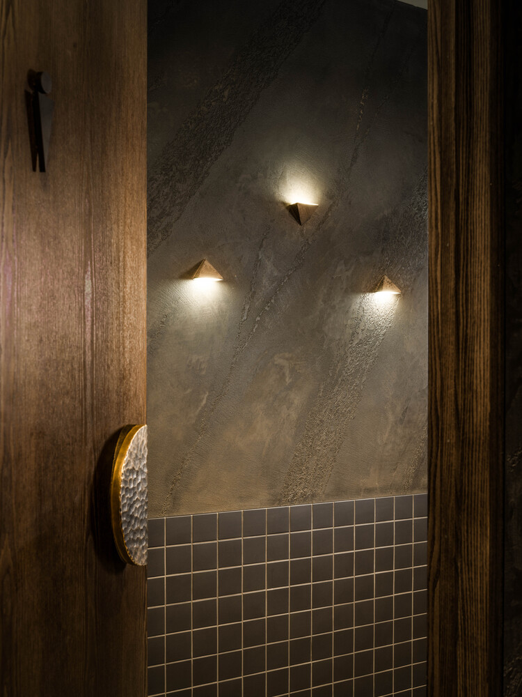 Although Sugarloaf is built at a commercial scale, its atmosphere remains deeply personal and serene. The architecture maintains a balance between masculine mass and feminine detailing. Soft curves are introduced through furnishings and subtle hardware touches, while triangular references in the Tonka kitchen and Bocci pendant lighting echo the surrounding alpine peaks.