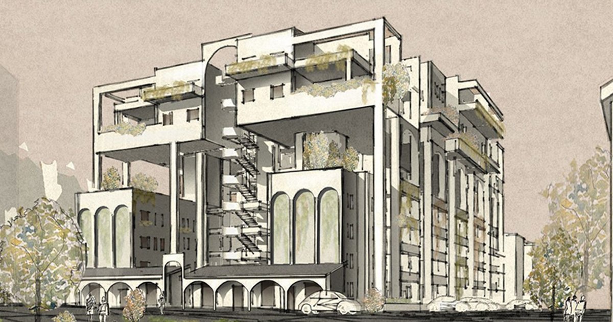 The facades balance repetition and variation, echoing the nested structure of the conceptual metaphor. Green elements integrated into balconies and elevations soften the building mass and improve microclimatic conditions. The architectural language remains calm and human-scaled, ensuring that the intervention enhances rather than dominates the surrounding neighborhood.