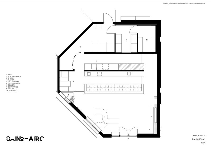 Sans-Arc Studio's approach to Gelato Messina Kent Town is grounded in the principles of timeless design and sustainability. By restoring the existing shell and selecting durable materials, the studio ensures that the gelateria not only stands the test of time but also respects its historical context. The juxtaposition of retro elements with industrial materials creates a unique space that remains relevant and functional.