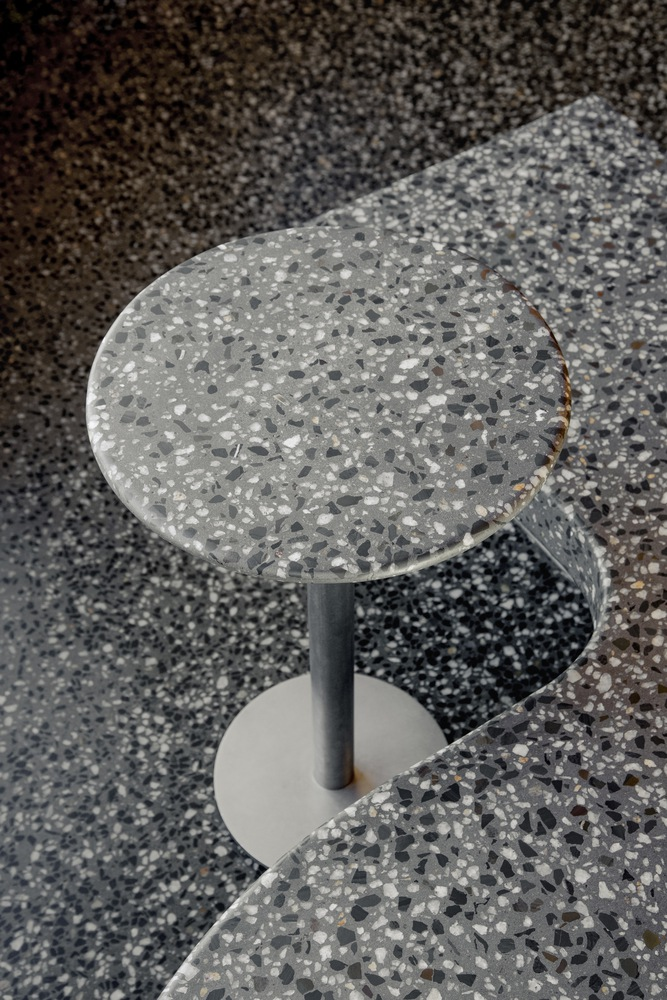 The gelateria’s layout, featuring concrete furniture and heavy, loose tables, is meticulously planned to manage and facilitate the flow of customers. This setup, combined with the retro-inspired design, offers just enough comfort for guests to enjoy their gelato before continuing on their way, thereby ensuring a smooth and enjoyable experience for all.