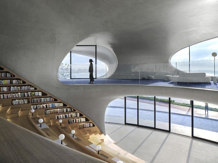 MAD Architects has just unveiled the breathtaking Cloudscape of Haikou, a new building that transcends the boundaries of time and space, located in the 20-acre Century Park overlooking Haikou Bay. Blurring the lines between the surrounding sea, sky, and land, this biomorphic vessel is both an intimate library and a waystation for park visitors. Its sinuous, curving form appears to have been shaped by natural forces over millennia, but the reality is that this 11,000-square-foot marvel was achieved through significant technical innovations and hands-on craftsmanship.