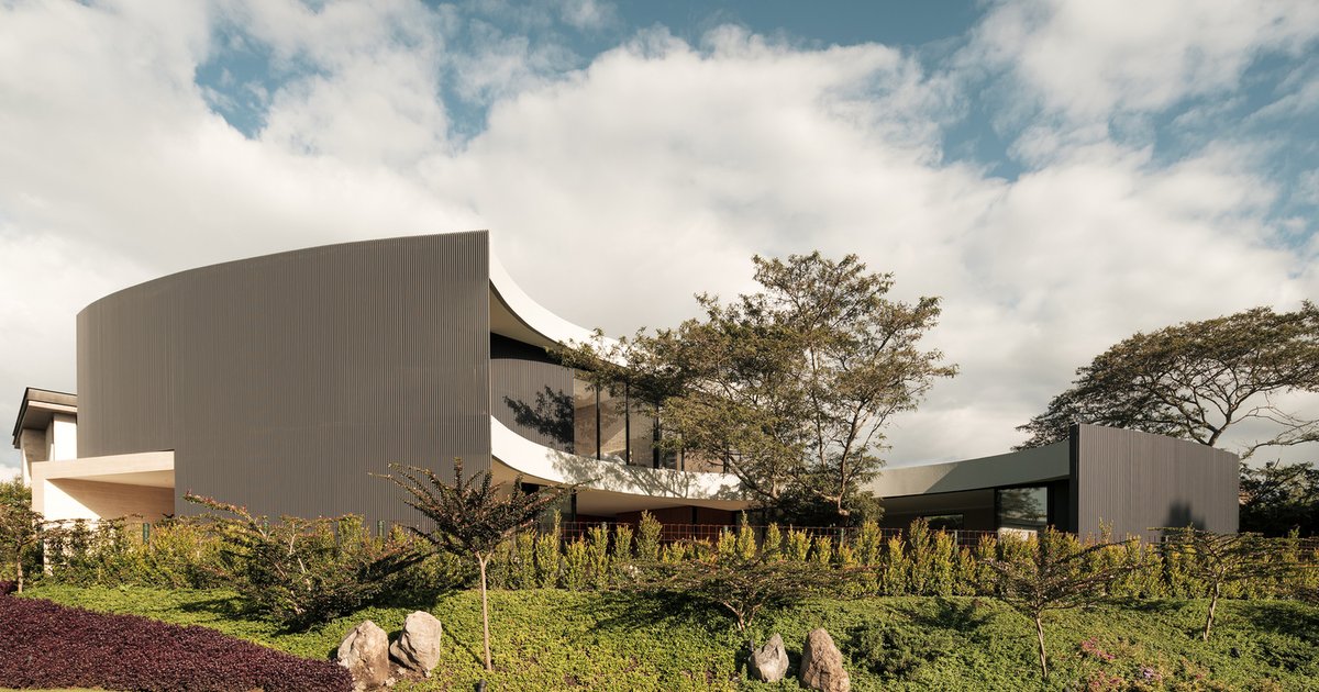 Riba House in Puembo, Ecuador, by TEC - Taller EC, harmoniously integrates a central carob tree, curved design, and Andean landscape views.