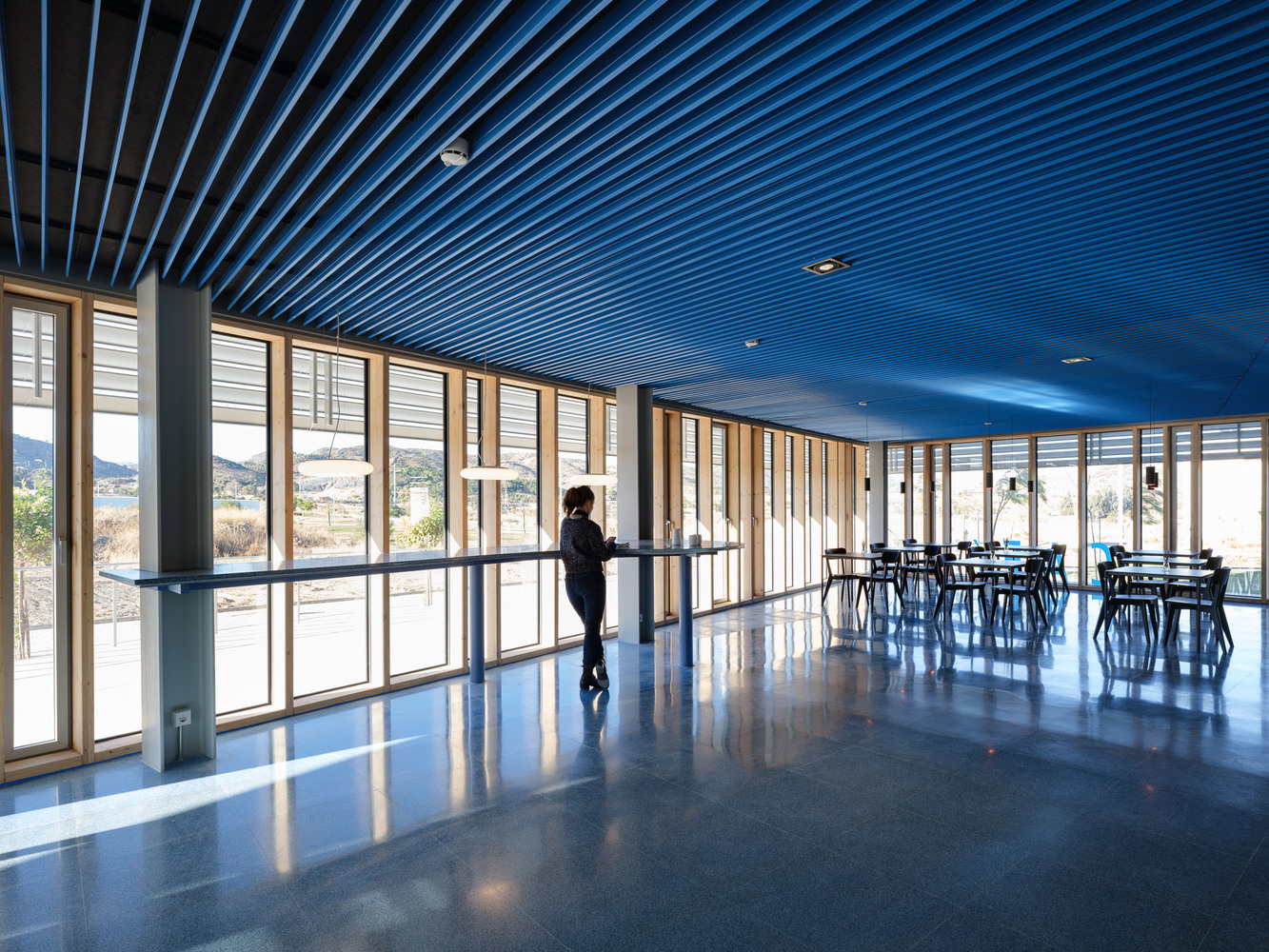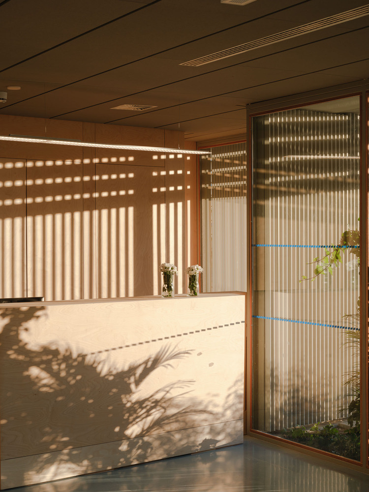 - Exposed slabs that enhance thermal inertia and minimize the need for false ceilings.