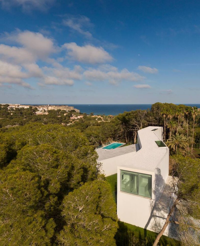 Sabater House is defined by a refined geometric language composed of straight lines softened by gentle curves. This balance between precision and fluidity allows the architecture to be simultaneously minimalist and organic. White surfaces, controlled openings, and carefully framed courtyards reinforce the sense of abstraction while intensifying the relationship with light, vegetation, and horizon.