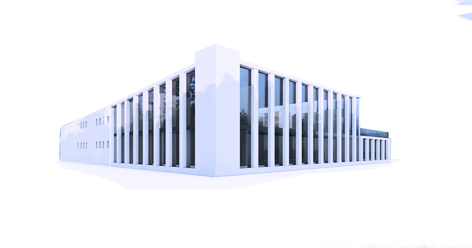 The image of the building is inspired by the classical colonnade of townhalls and forums, this image of the colonnade was abstracted and interpreted in a contemporary style, concrete columns spanning from the ground floor to the first was the dominant element in the design of the facade gives the sense of stability and formality of the building, in paradox the inclination of the mass, the rotation of the atrium and the outdoor stairs breaks this image slightly to ensure the sense of accessibility for the public.