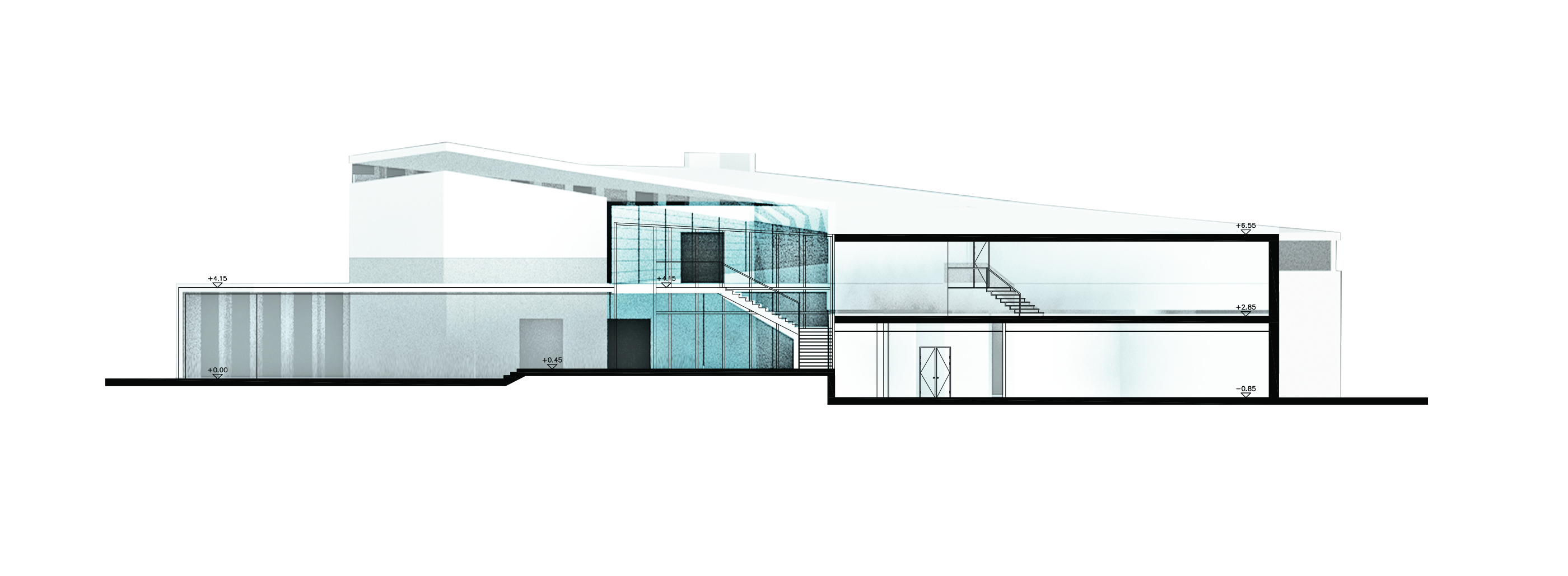 The separation of public and private use was taken into consideration while designing the functions, public functions as the library, exhibition were placed with separate entrances, the library was created underneath the outdoor stairs which created an interesting interior space under the stepped ceiling, this space will be a lounge and informal reading space in the library.