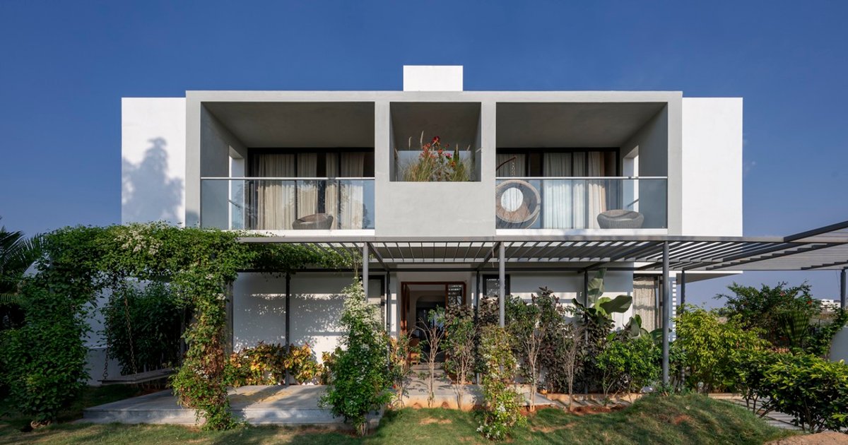 Located in the northern peri-urban edge of Devanahalli, Bengaluru, SAMAM House by ma+rs is a thoughtfully planned private residence that reimagines everyday domestic living through spatial clarity, landscape integration, and budget-conscious design. Designed for a family of four along with their three dogs, the project responds sensitively to both human and non-human inhabitation, creating a home where indoor and outdoor life coexist seamlessly.
