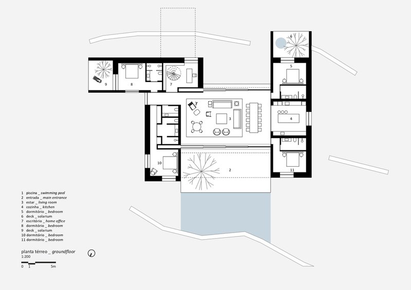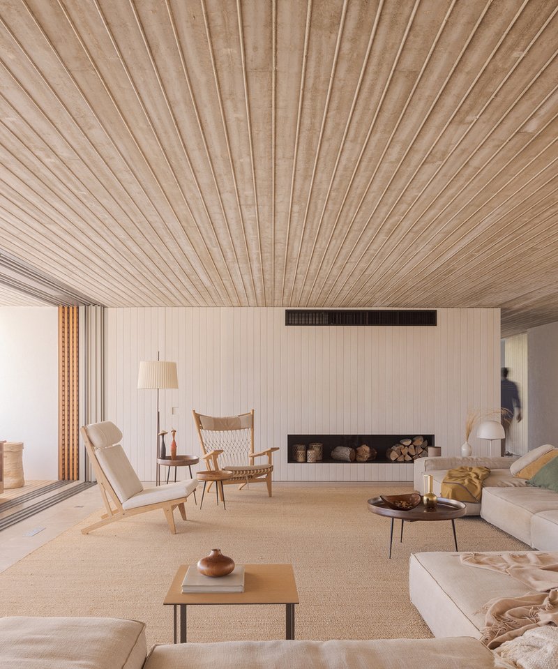 The architectural philosophy embraces openness to the infinite landscape. One house is perched to offer sweeping sea views, while the other nestles into the valley, embraced by lush gardens. The cross-shaped floor plans are organized around a central "piazza" that functions as a communal living space, blending seamlessly with the outdoors.