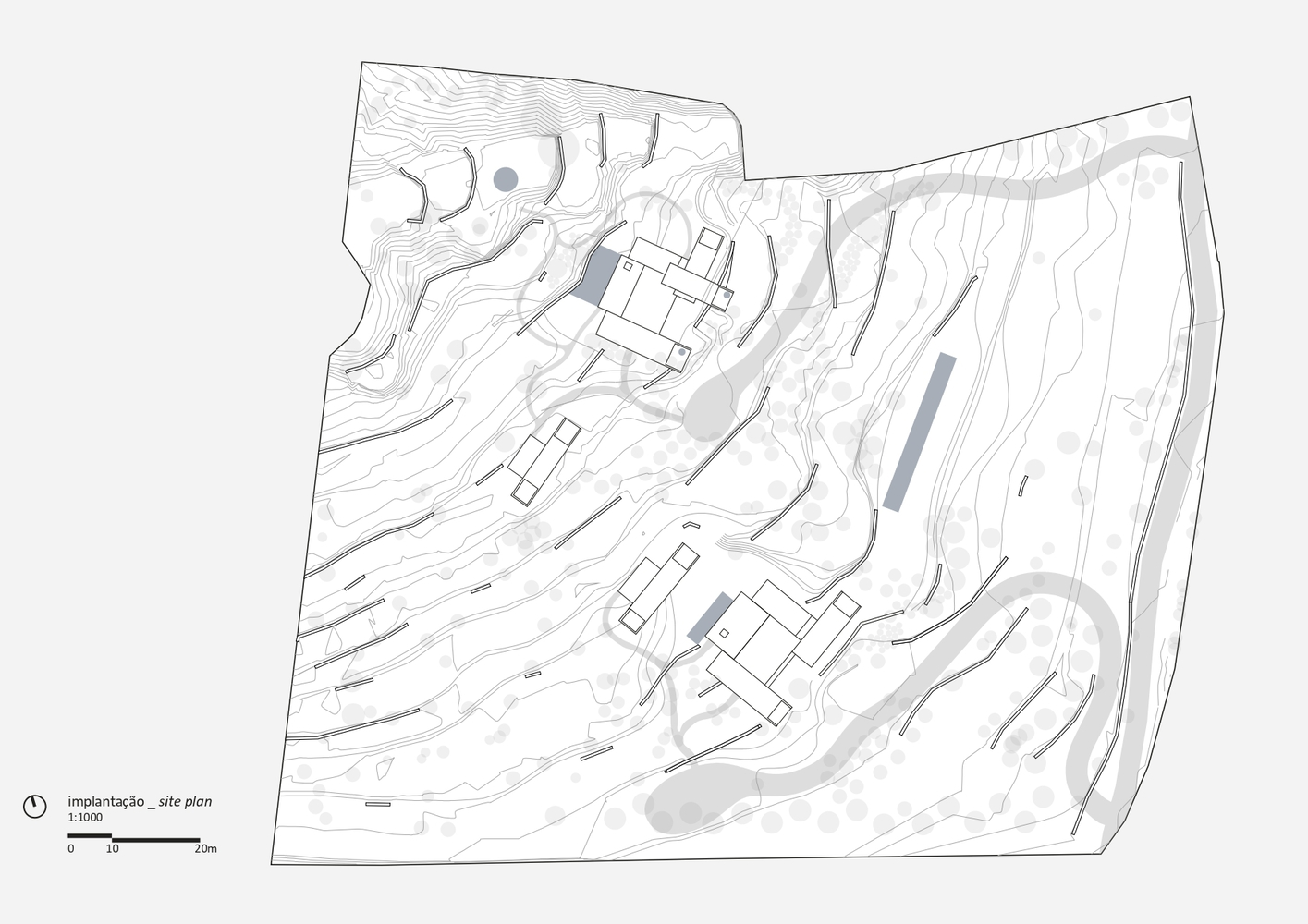 The villas are composed of four white volumes that accommodate two houses and two flats, thoughtfully integrated into the rugged Mediterranean landscape. By respecting existing stone walls and plateaus, the design minimizes environmental impact and maximizes water retention for the arid gardens. The layout features two common swimming pools, enhancing the sense of luxury while maintaining a deep connection with the natural surroundings.