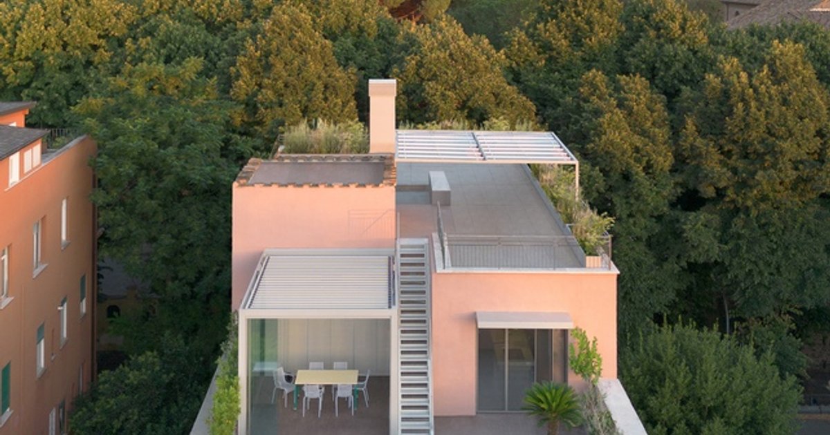 San Saba House Extension reconfigures a historic Rome building, blending steel, terracotta, and terraces for seamless indoor-outdoor contemporary living.