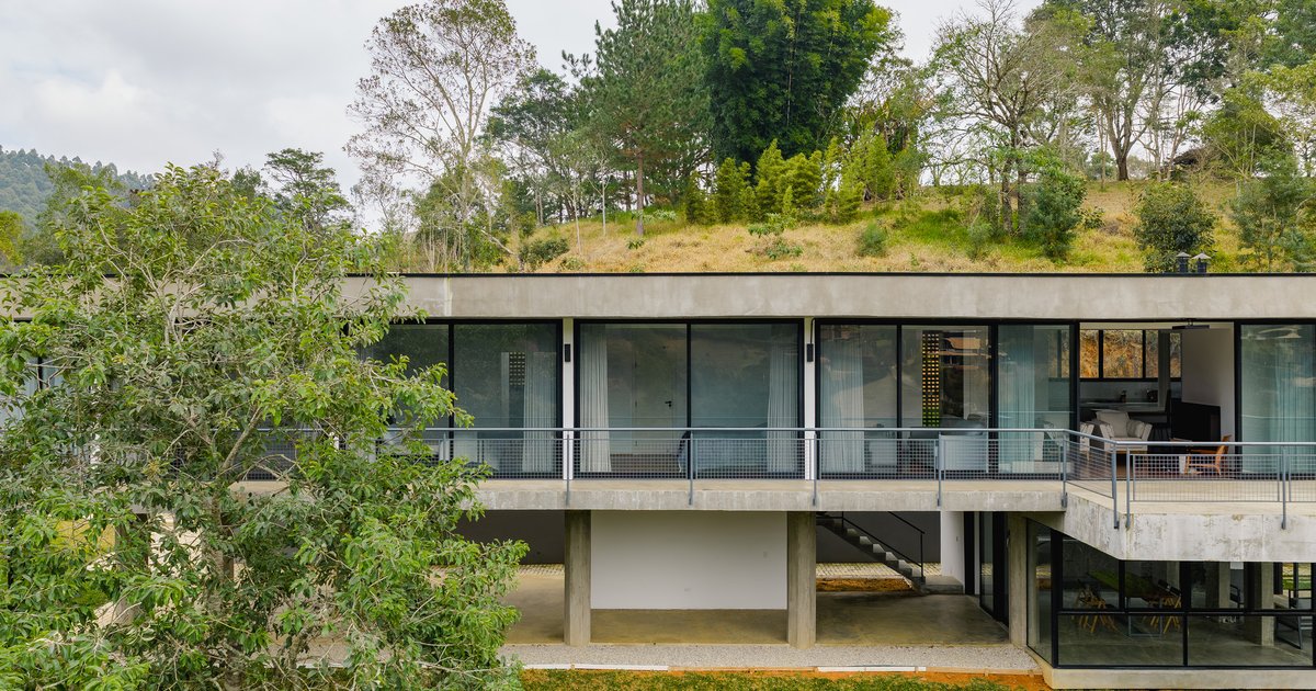SAP House is a suspended mountain home that embraces the slope, blending glass, concrete, and nature for elevated, landscape-integrated living.