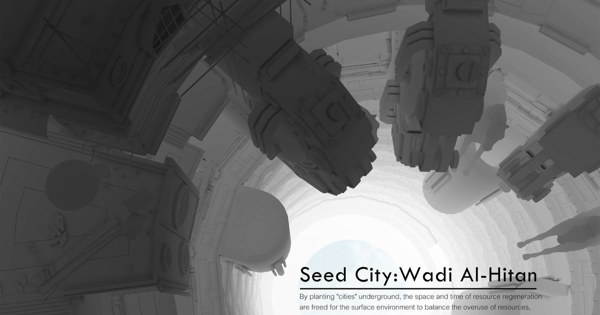 By planting "cities" underground, the Seed City: Wadi Al-Hitan project reimagines the way we approach resource regeneration and environmental sustainability. This visionary concept, conceived by Randy Luo and recognized as a shortlisted entry in the EHC - Sahara competition, explores how underground urban development can balance the overuse of resources and provide a sustainable habitat for humans in one of Earth's most extreme environments.