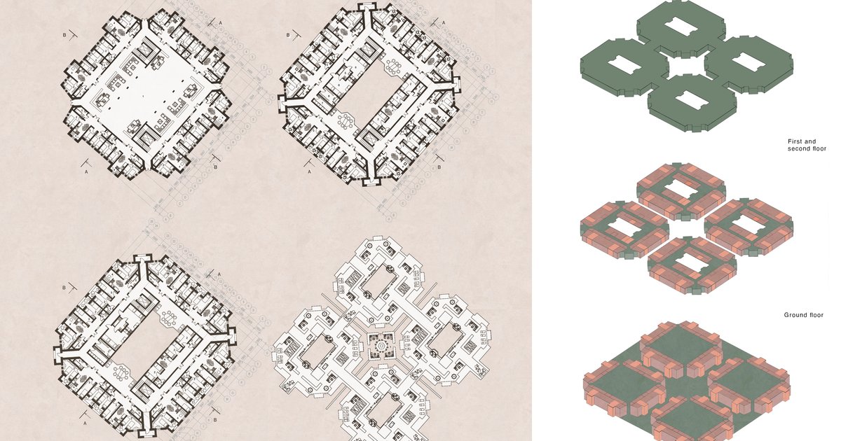 This senior housing architecture proposal addresses one of the most pressing social realities: elderly individuals increasingly experience isolation, reduced social relevance, and limited opportunities for active engagement. Rather than designing a traditional care facility, the project reimagines elderly housing as a vibrant architectural ecosystem built around communication, safety, and shared experience.