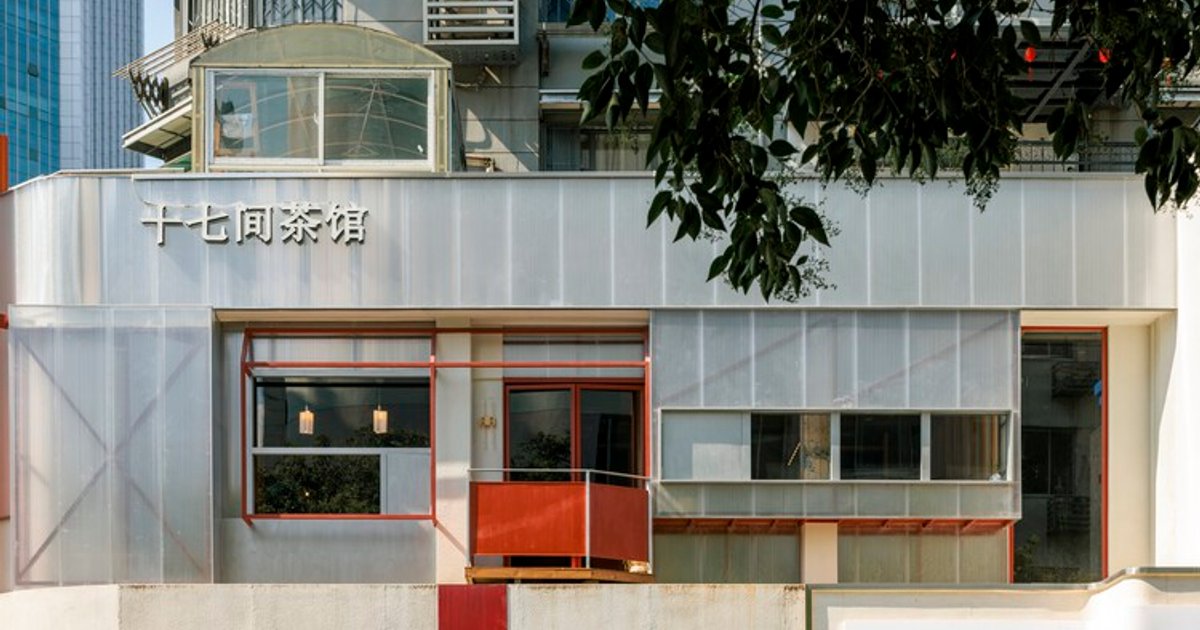 Located on the second floor of a street corner in Nanjing’s Caozhi Alley, the Seventeen TeaHouse by Modum Atelier transforms a hidden and inward-facing site into a dynamic social environment. Positioned between the bustling Xinjiekou commercial district and a quieter residential neighborhood, the project responds to its paradoxical condition—present within the city yet visually concealed from it.