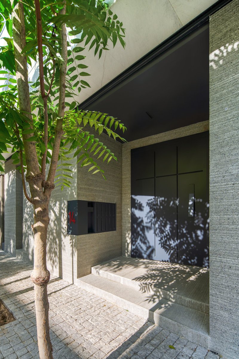 Within these planters, mature trees and diverse vegetation thrive, each unit hosting a distinct species to cultivate a rhythm of variation across the elevation. This design gesture transcends ornamentation—it is a conceptual act of identity, granting every apartment its own botanical signature and fostering a subtle sense of belonging for each resident.
