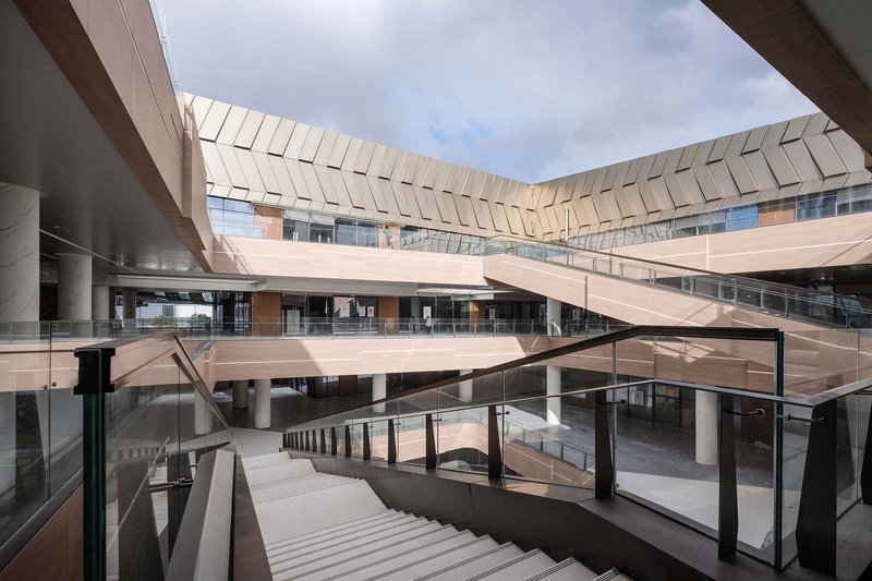 Additionally, the façade integrates Low-E insulated glass and carefully engineered triangular panels to maintain the folded aesthetic while solving complex installation challenges. This creates a breathable epidermis—a façade that is high-performance, resilient, and elegant.