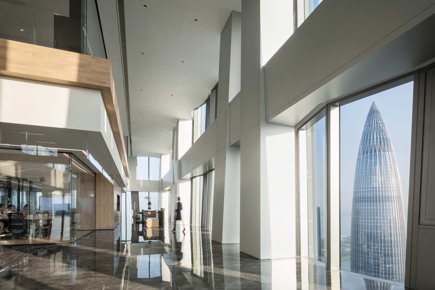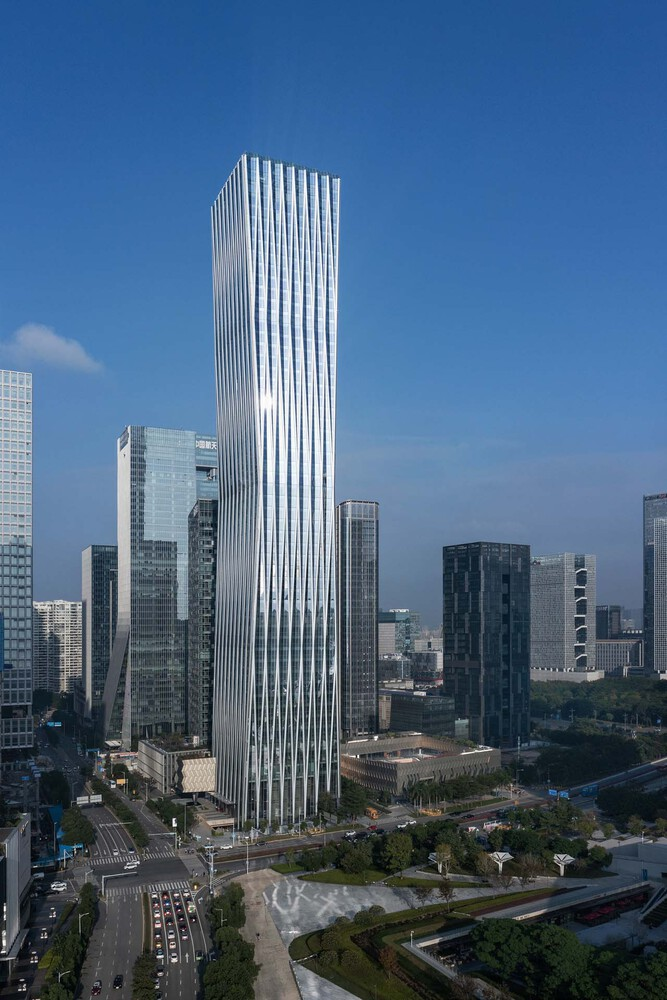 The design adopts a distinctive folded façade inspired by the dual symbolism of waves and diamonds—an ode to Shenzhen’s coastal setting and financial strength. This geometry creates a tower that conveys stability, lightness, and elegance while enhancing visual dynamism across the skyline.