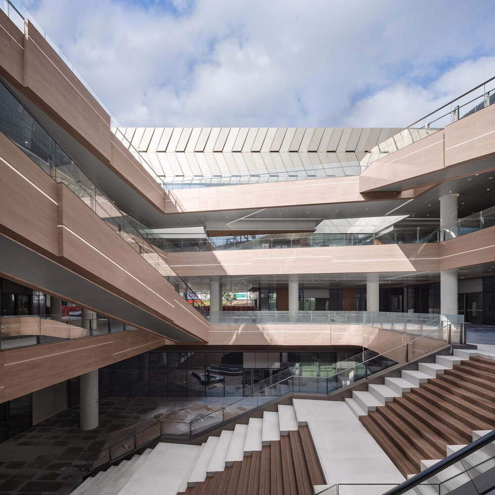 With these factors, the development was envisioned as a "hub park", where commerce, transit systems, waterfront spaces, and roof gardens converge. The podium acts as a connective fabric, weaving together retail, transportation, public plazas, and open-air landscapes, ultimately functioning as a modern-day Central Park for Houhai.