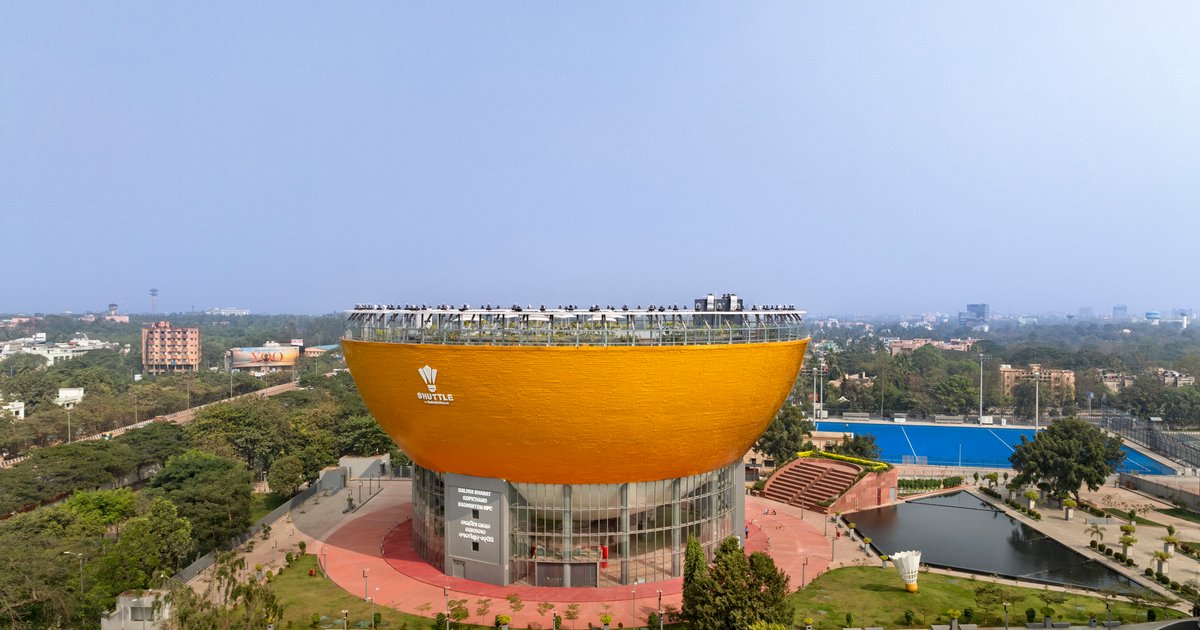 A golden bowl rises in Odisha to house India's next generation of badminton talent, merging sport infrastructure with civic ambition.