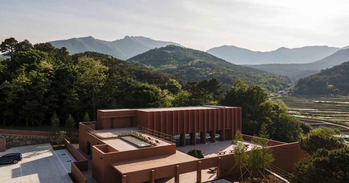 Sihaon’s design masterfully connects the built environment with its natural surroundings. By observing the height of nearby trees, the architects designed walls with varying heights and slits, framing views of the surrounding Yeongnam Alps. Inside, visitors encounter a series of carefully orchestrated sequences that keep the experience dynamic. From a dramatic window framing the mountains to views of the garden pond and lush landscaping, each space offers a distinct perspective, enriching the experience with natural light and minimizing reliance on artificial lighting.