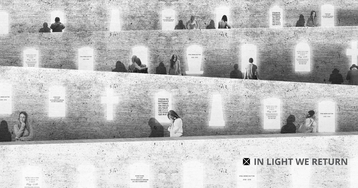 Architecture is evolving to address the pressing needs of urban expansion and sustainability. The Sky Cemetery, designed by Jienan Zhang, Liao He, and Joe He, redefines traditional burial spaces by transforming cemeteries into vertical memorial architecture, integrating the past, present, and future into a singular spatial experience. As an Honorable Mention entry in the Circle of Life competition, this visionary project "In Light We Return" offers a compelling alternative to conventional burial grounds, optimizing urban land use while embracing the symbolism of light and remembrance.