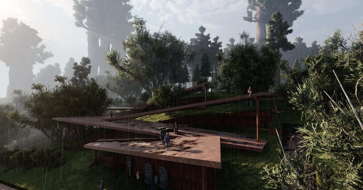 Tea culture has existed at different times in human history with different meanings and events. Tea culture should be defined and addressed by the way tea is made and consumed, the way people interact with tea, and the aesthetics surrounding drinking tea. Besides communication, tea has deep meanings, social and cultural roles that meet concepts such as soul bath, infusion, and self-reach, ritual, and healing. The equivalents of these different concepts can be found in the meanings of tea in different cultures in history. For example, drinking or serving tea in China involves a ritual that is part of daily life, while in Japan these rituals are organized for healing purposes. In the Buddhism faith, Buddhists consume to empty their minds and become isolated from the world and reach spiritual maturity when starting meditation. When looking at the Tao belief, tea is a substance that provides harmony, which is one of the basic components of the potion of immortality.The drinking places of this tea, which is drunk for different purposes, have also changed in history and cultures. While Asian culture has tea rooms and tea houses, in England this has become more ostentatious, served at palaces or in its magnificent gardens. Tea shops have been established in Turkey and the Middle East and new places have been produced where people come together. Looking back on the present, it proves that drinking tea is no longer needed in such sharp places, even on the street in India. It has been a drink that can adapt to different cultures as well as different venues.Tea is a culture that distinguishes it from other beverages; rituals are caused by its use for different purposes and, most importantly, because it is a drink with high interaction with human beings. Today, the fact that tea is being looked at from such a superficial point and reducing its interaction with human beings causes it to lose its deep meaning. Tea is a phenomenon that can maintain its essence and gain meaning if it meets people. This drink, which is brewed with rituals and rests the soul, loses its meaning when its interaction with people decreases. However, it is not possible and realistic that past rituals are still strictly preserved and presented to humans in today’s world.Designing began by combining programs and venues to break down the perception of a modern tea place with limitations and old rituals. For this reason, the tears, and the openings to each other are the conditions that will provide this fusion. When a venue is entered, it is not desirable for that place to stand out with a single function, so the programs are grouped and they have brought functionality to the space together.In addition, it is aimed to include landscape and tea in the places and to maintain its interaction with human beings. The main decisions of the design were that the context had never been touched before and that it remained quite bare next to the surrounding green textures. When looking at the tree population around Ooty, it was also tried to reflect the green wave design area around the long-bodied and thorny trees, short-bodied and densely leafy tea trees. The tea plant, which is kept at an average of 120 cm for production, was freed in this design, left to its natural state, helping to integrate the structure located on this bare land with the land and to melt the structure in the land.The indoor spaces of the design aimed at melting in the land are positioned underground with favorable conditions.” With these strategies, TEA JUNGLE has created a tea experience center that references more landscapes by moving away from only structural interventions and allows us to experience the natural form of tea that we have not encountered before on-site.When viewed in the situation plan, only fringes and landscaping elements are visible. In this way, instead of an alienated structure in the binding, a design that belongs there and does not stand mass was made. Indoors are entered through openings under the eaves and hidden under the ground.To ensure the continuity of the spaces constructed inside with each other and not to narrow the circulation area, non-independent spaces are constructed.Design that argues that tea cannot be experienced in a single place in a single way; It also supports in-out relationships by providing connections between each other.