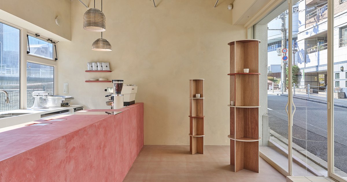 A compact Osaka café by BREND redefines small coffee shop interior design with built-in volumes, openness, and gender-fluid aesthetics.