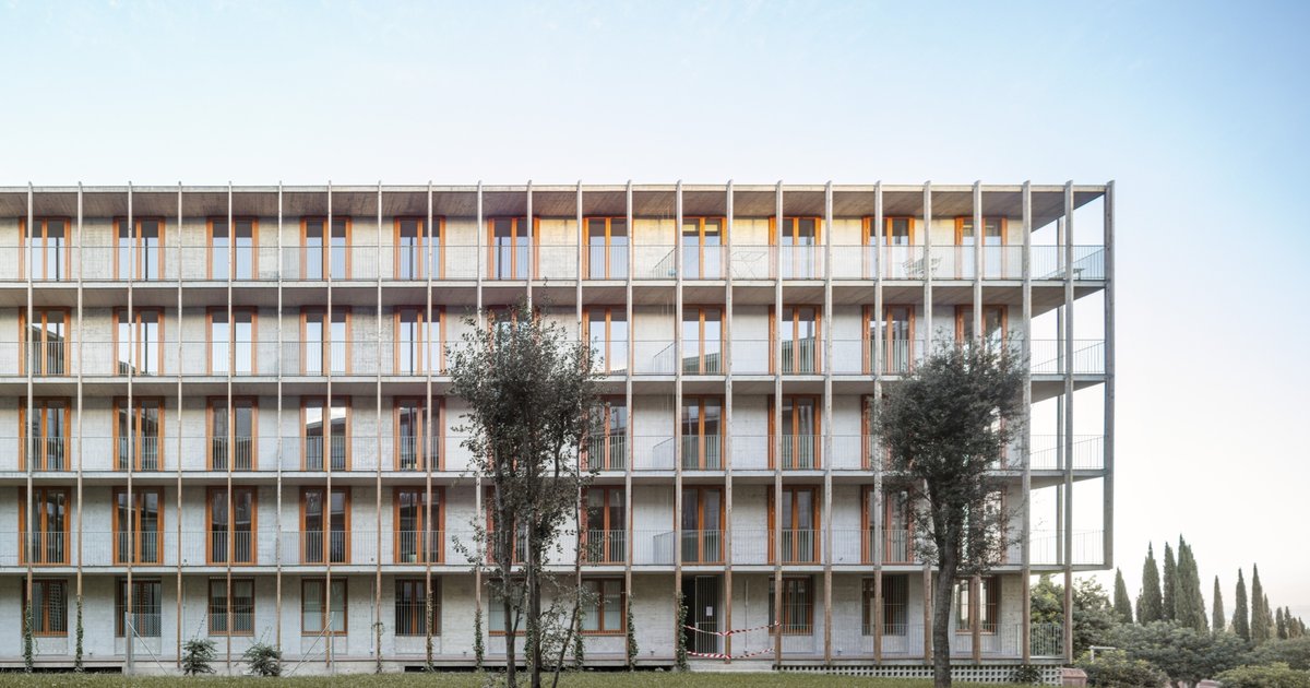 The housing is structured around an additive system of outward-facing rooms, ensuring every apartment enjoys views toward the surrounding landscape.
