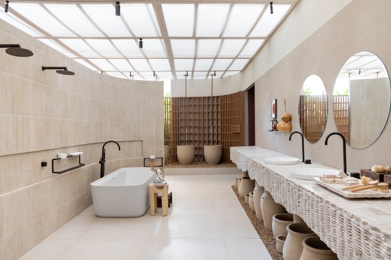 Lighting plays an essential role in spa architecture design. At the Naz Spa, natural light is strategically allowed to filter through the ceiling using wooden frames with linen, providing a soft and diffused glow. This lighting creates a peaceful environment that contributes to the overall sense of well-being. The integration of natural ventilation also enhances the atmosphere by maintaining freshness and connection with the outside world.