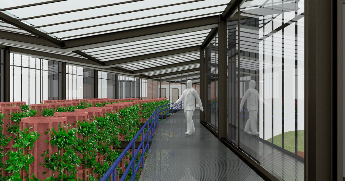 It is not intended to expand. I did not calculate the yield this type of project can bring but the intention is not indefinite growth as that would be contrary to the issue of land being (over)consumed by agriculture. It is meant to sustain itself, though I am not sure about how realistic vertical farms are in the Netherlands; there have been some notable startups in the past few years which have come and gone. Urban Greenhouse is meant to encourage locals to farm for themselves and explore small-scale methods of production. It also provides a platform for locals to learn about composting and water harvesting, as these are tactics applied inside the system and outside in the wild park.