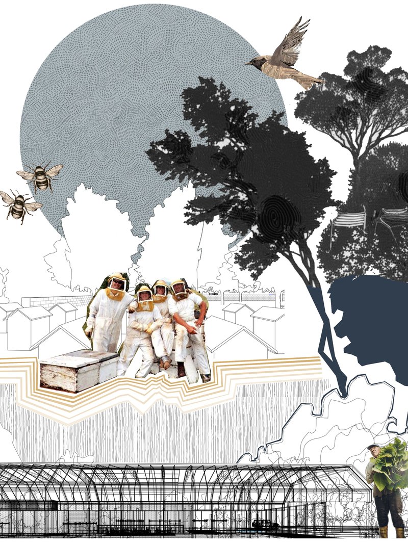 Local wood and firebrick are transformed into simple structures that evoke memory; the structures pay homage to Native American heritage by integrating with the tones of the land. Farmland, beekeeping gardens and edible landscapes are not only production areas, but also therapeutic spaces for every body in contact with the organic texture of the soil.