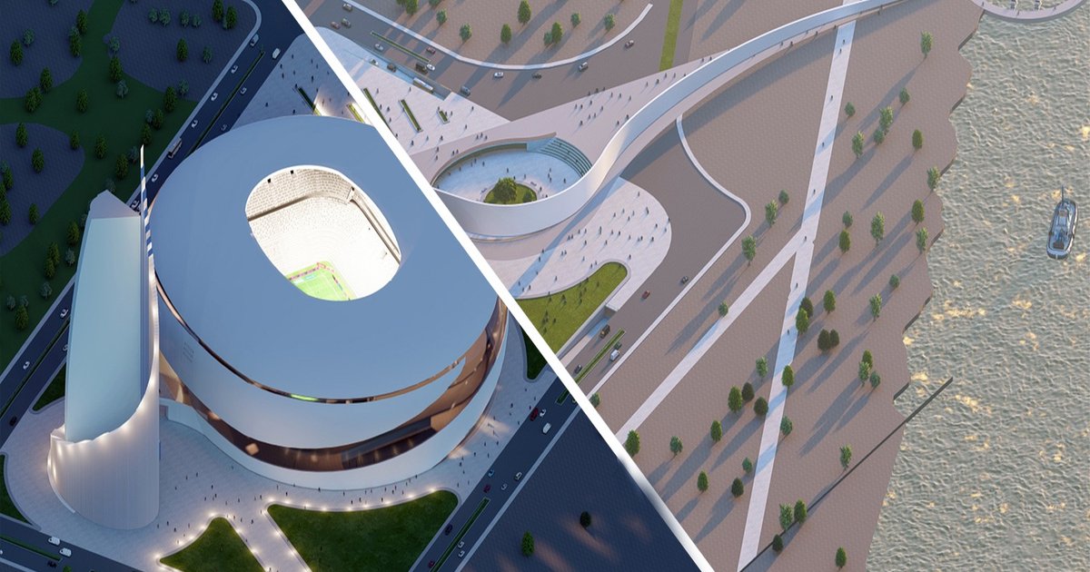 When the pier that takes people from the river rises from the ground and reaches the stadium, it first transforms into a structure that forms the facade of the stadium and then into a rising structure that surrounds the hotel. It is aimed not to interrupt the view with the lower square built on the part facing the river. There are eating and drinking areas in the parts of the stadium facing the river, and the facade has been made transparent in the parts corresponding to this area in order not to spoil the view.