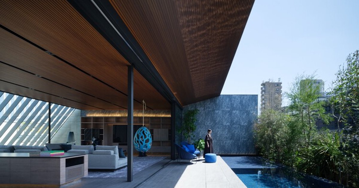 STEALTH House in Tokyo blends urban luxury and resort-style living, featuring infinity pool, private garage, rooftop dog run, and serene, modern design.