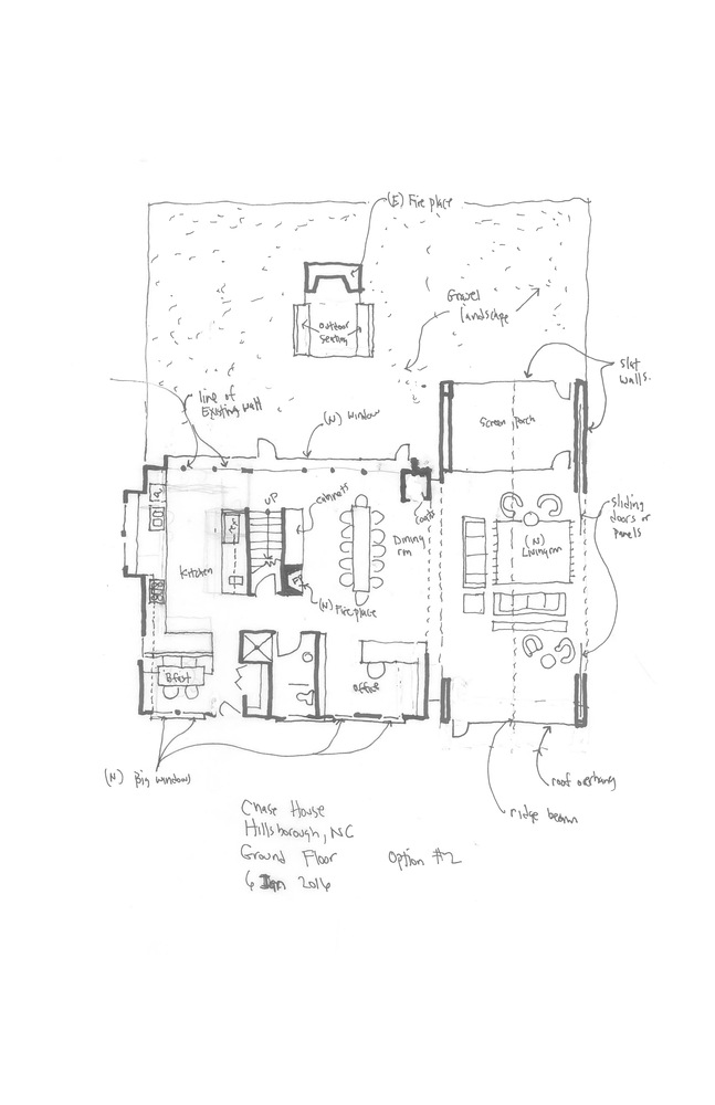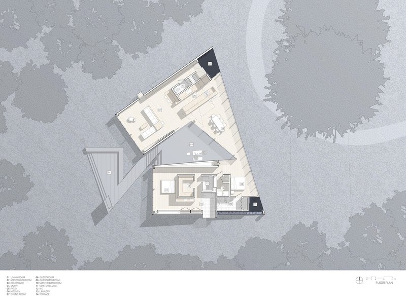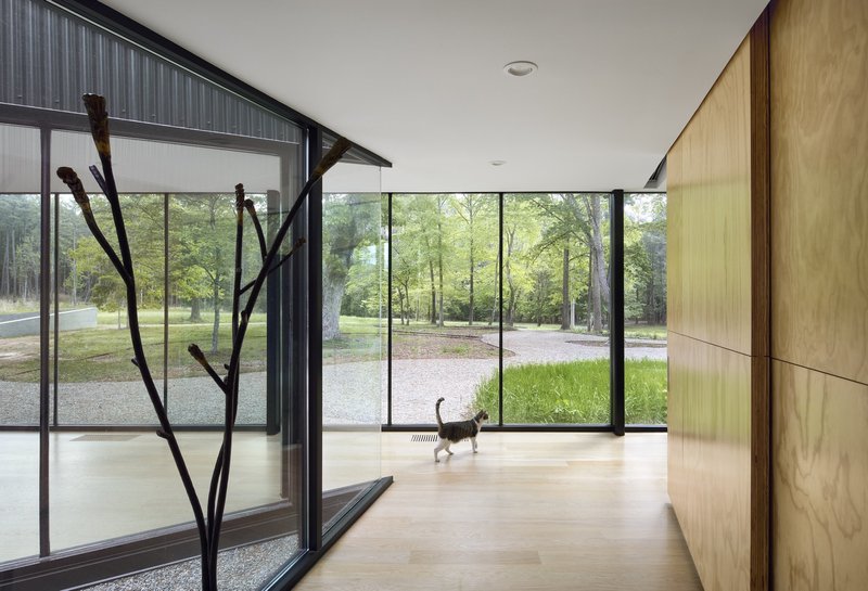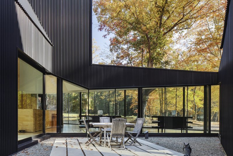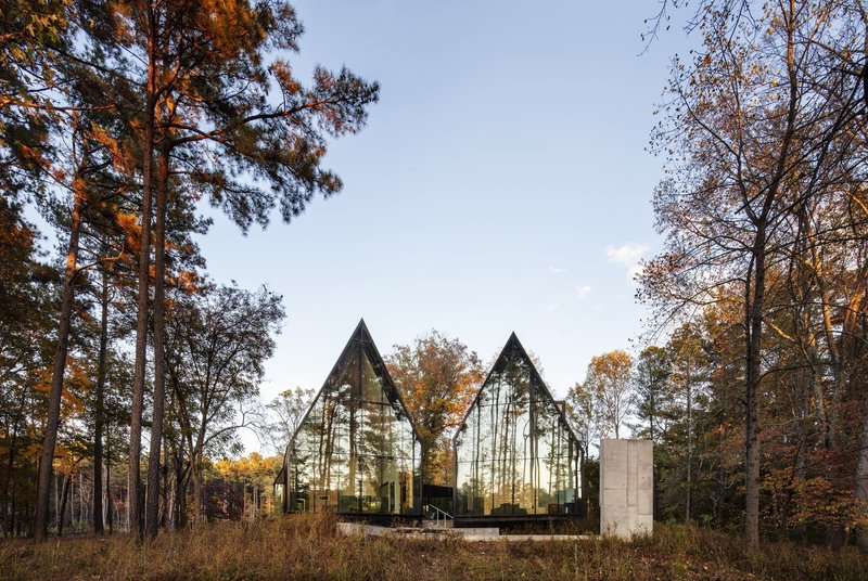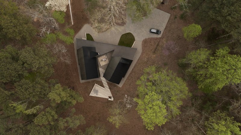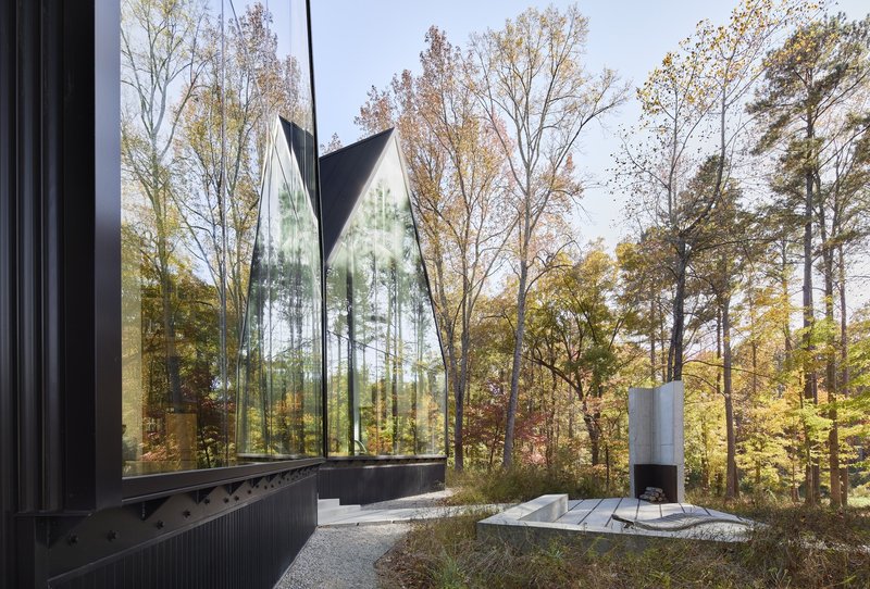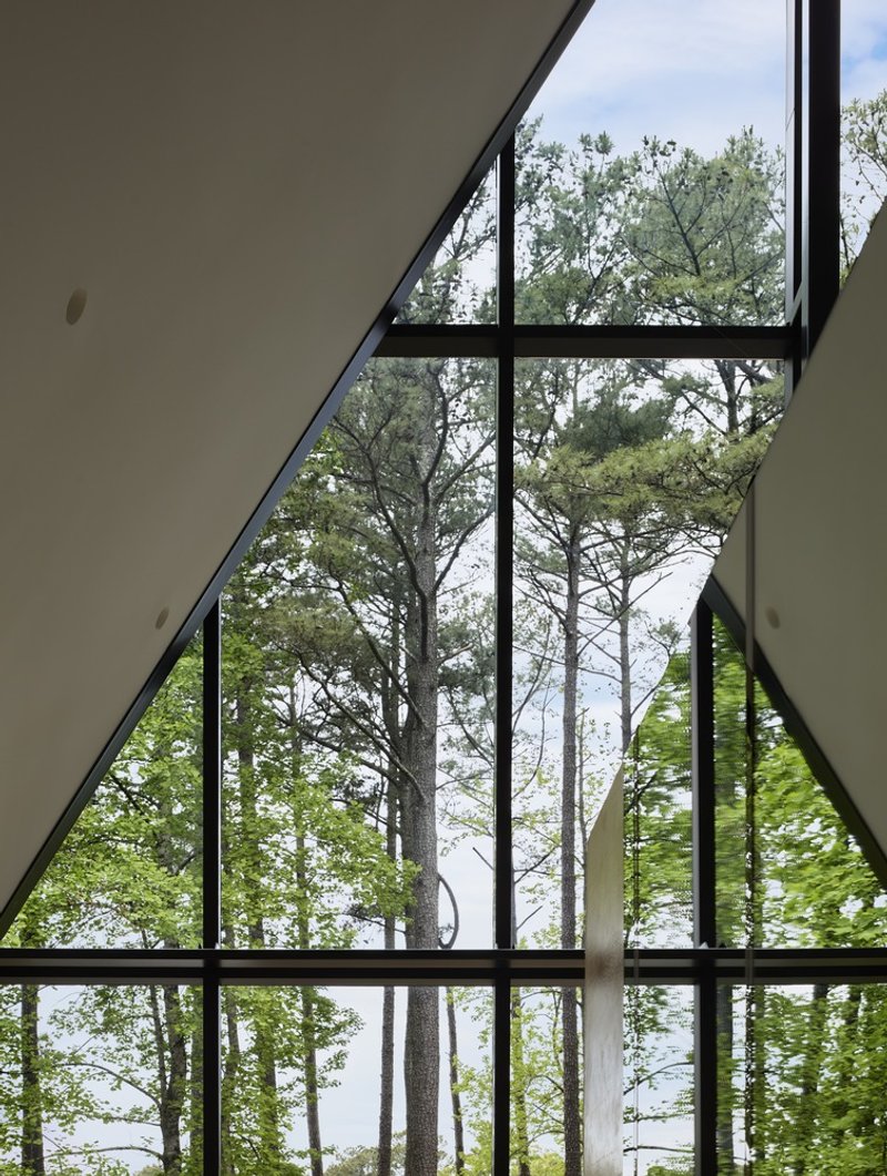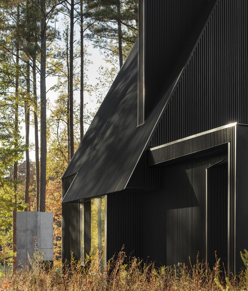 Steeplechase House was conceived as a sanctuary, a place of reflection and repose, drawing inspiration from the client's roots in Montreal. The home offers a tranquil retreat from the fast-paced life of Hollywood. Located near the Eno River, it is nestled amidst forests, reflecting the owners' desire to reconnect with nature.