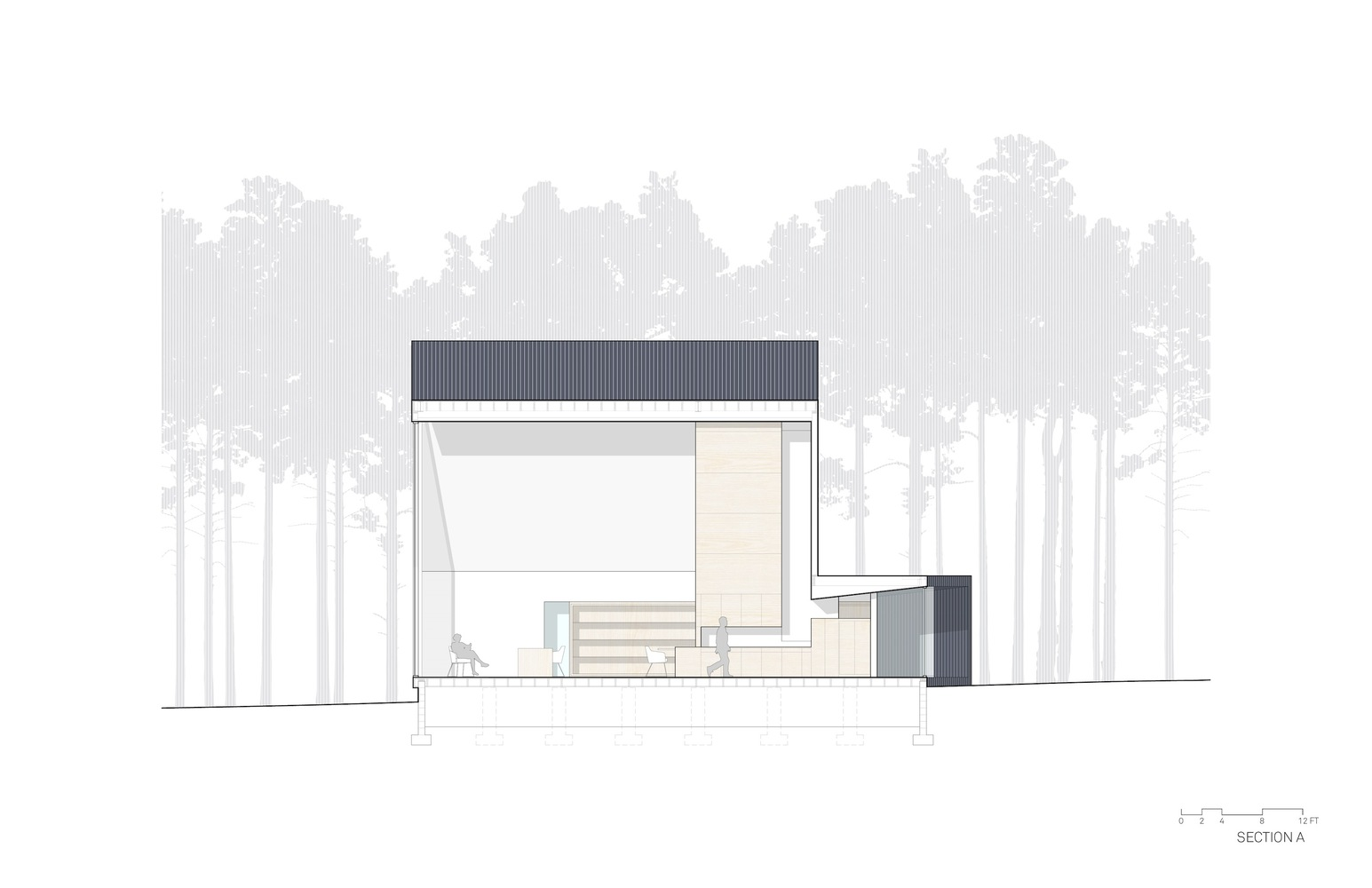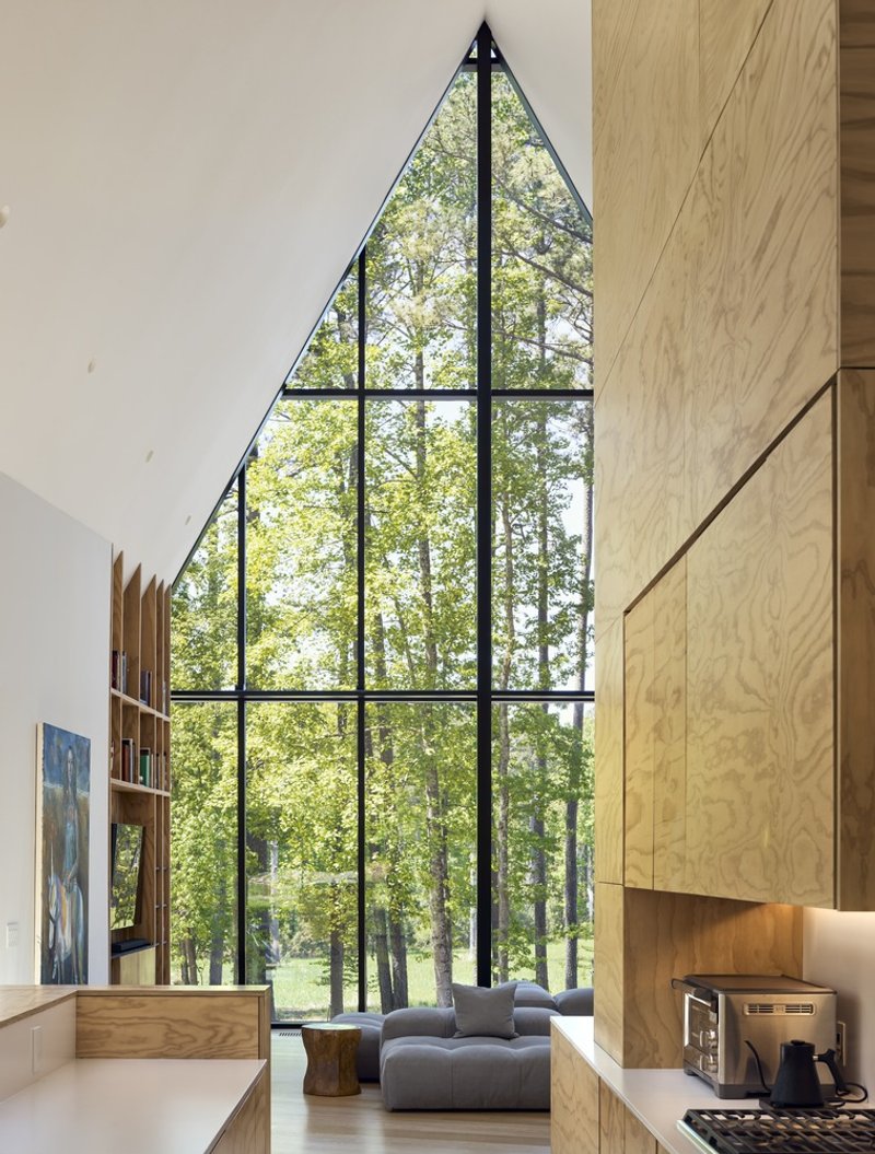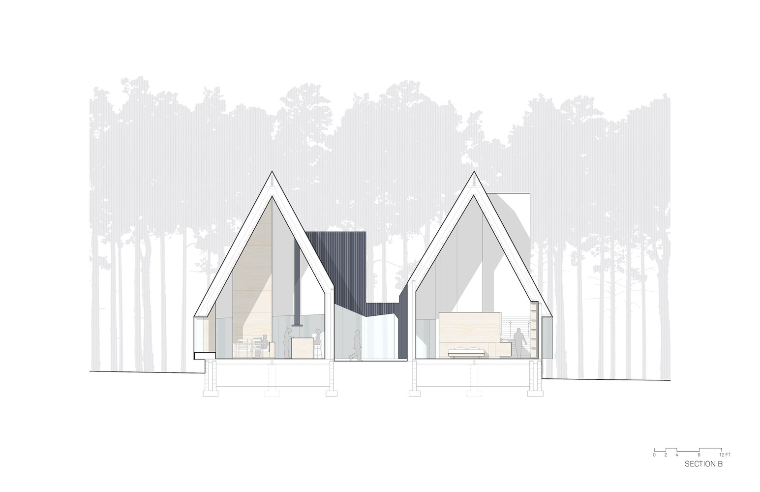 - Natural Materials: The use of natural plywood for interiors complements the forested surroundings and promotes a warm, welcoming space.
